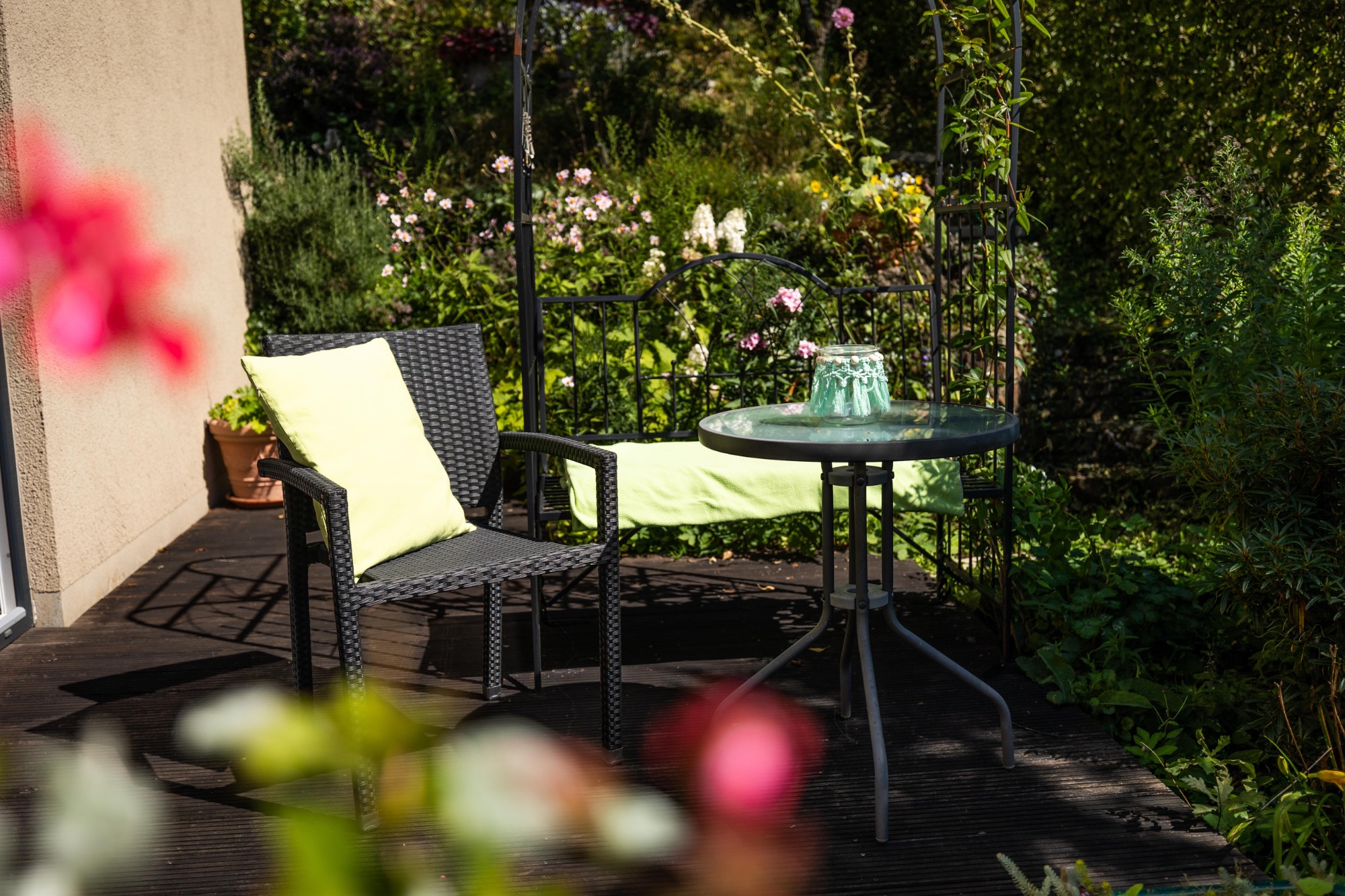 Der Außenbereich unseres Ferienhauses lädt dazu ein, die Natur der Eifel in vollen Zügen zu genießen. Ob beim Frühstück auf der Terrasse, beim Lesen im Grünen oder beim entspannten Ausklang des Tages - hier kannst du den Tag fernab von Lärm und Hektik genießen.
